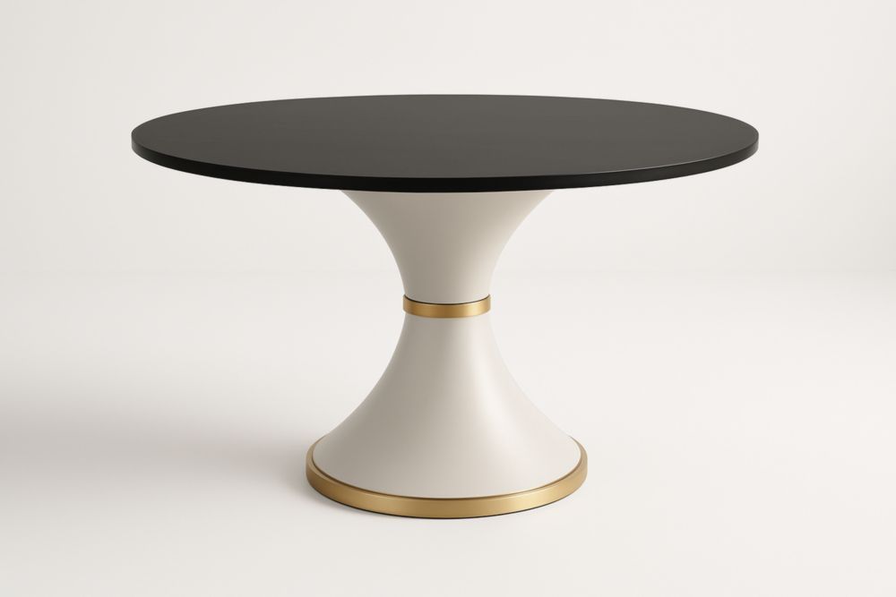 Tavolo da pranzo rotondo in legno multistrato e acciaio nero e bianco