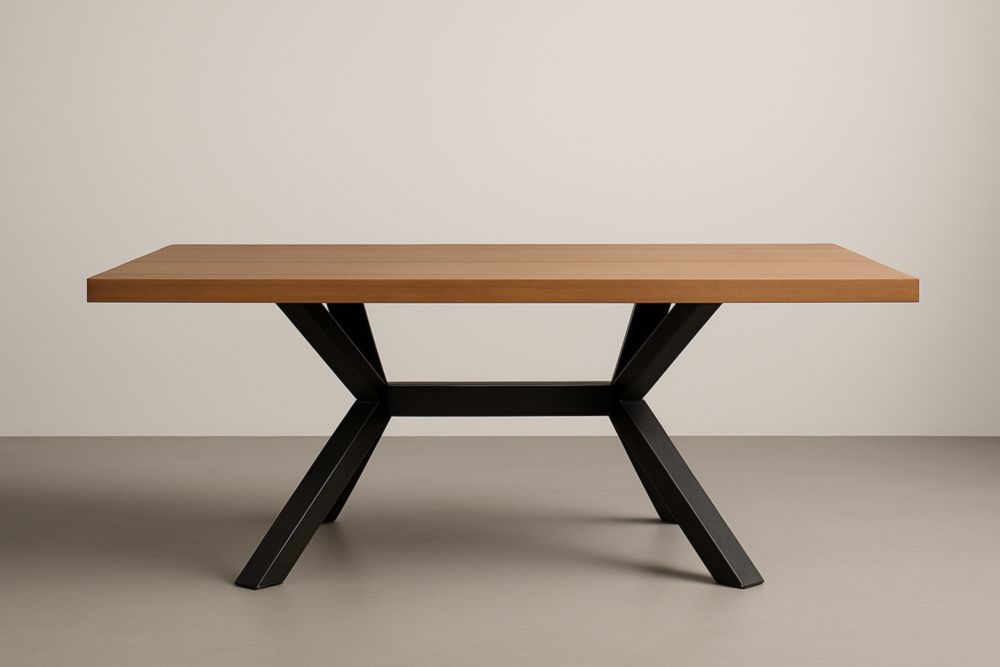 Tavolo da pranzo rettangolare in legno massello e acciaio 200x100x75 cm(Lu×L×H)
